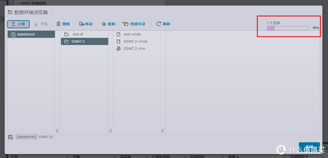 🔺进度条跑完了点击右下角的关闭即可,顺便说一句,上传的两个文件只显示 arpl.vmdk,arpl-flat.vmdk是看不到的,这个是正常情况。