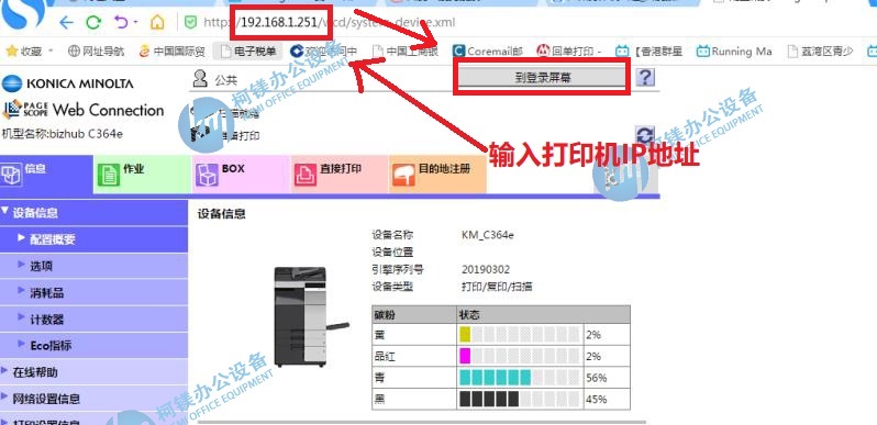 1、在电脑浏览器输入柯尼卡美能达/震旦复印机的IP地址
